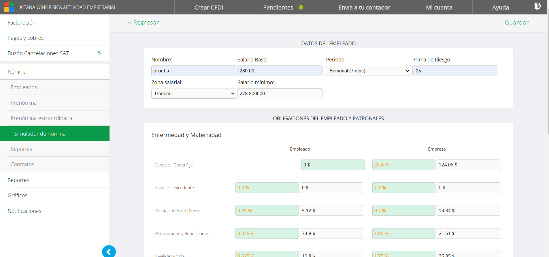 El cálculo que se genera en el sistema para sueldos y salarios está creado para obligaciones patronales IMSS (no ISSSTE) . Se considera cómo automático el factor de integración mínimo para calcular el salario diario integrado (25% de prima vacacional, 15 días de aguinaldo), para los casos con otros factores es necesario que se seleccione el SDI personalizado y se actualice cada aniversario del empleado (al ser personalizado no lo hará sistema). De momento no hay registro de jornada reducida, no se realiza cálculo de ajuste anual de forma automática, sólo el ajuste mensual.
