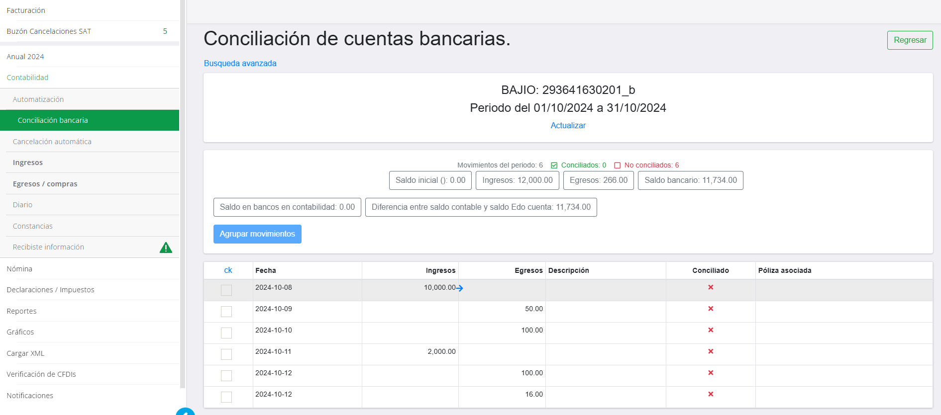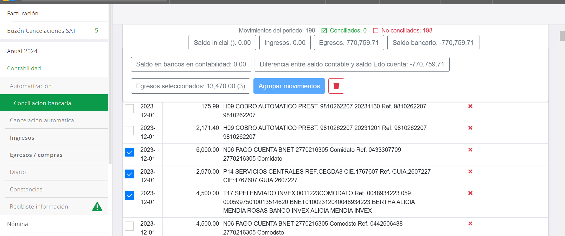 Fue diseñado por programador externo, actualmente es Ricardo Gónzalez quién nos apoya para resolver errores o incidencias con el apartado -suele no cargar vista - . La herramienta básicamente consiste en el comparativo de los movimientos que afectan la cuenta bancaria registrada en sistema y los movimientos que están en el archivo que se cargó. No es una herramienta que registra movimientos al cargar el estado de cuenta.